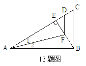 13. 如图AB⊥BC,BE⊥AC,∠1=∠2,AD=AB,则 ( )