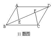 11. 如图,已知AB=DC,AD=BC,E、F在DB上,且BF=DE,若∠AEB=1200,∠ADB=300,则∠BCF= ( )
