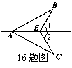 16. 如图,∠1=∠2,要使△ABE≌△ACE,还需添加的一个条件是 (填上你认为适当的一个条件即可).