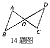 14. 如图,AC,BD相交于点O,△AOB≌△COD,∠A=∠C,则其他对应角分别为 ,对应边分别为 .