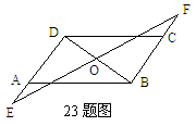 23. 如图,AB=CD,AD=BC,O为BD中点,过O点作直线与DA、BC延长线交于E、F,若,∠ADB=600,EO=10,则∠DBC= ,FO= .