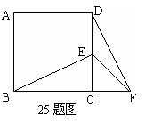 25. 如图,在正方形ABCD中,E为DC边上的点,连接BE,将△BCE绕点C顺时针方向旋转900得到△DCF,连接EF,若∠BEC=600,则∠EFD的度数为 .