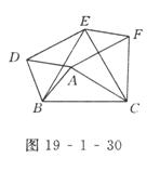 15.如图19-1-30,分别以△ABC的三边为边长,在BC的同侧作等边三角形ABD,等边三角形BCE,等边三角形ACF,连接DE,EF。求证:四边形ADEF是平行四边形。