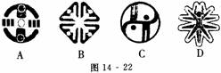 13如图14-22所示,下列四个图形中,对称轴条数最多的一个图形是( )