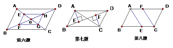 6.如图,□ABCD的对角线相交于点O,E、F、G、H分别是OA、OB、OC、OD的中点,则四边形EFGH ,理由是