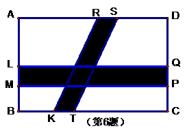 6.如图:矩形花园中ABCD,AB=a,AD=b,花园中建有一条矩形道路LMPQ及一条平行四边形道路RSTK。若LM=RS=c,则花园中可绿化部分的面积为( )