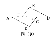 9. 如图(8),△ABE≌△ACD,AB=AC,BE=CD,∠B=50°,∠AEC=120°,则∠DAC=( ).