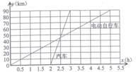 22、某地表示甲骑电动自行车和乙驾驶汽车匀速行驶90km的过程中,行驶的路程y与经过的时间x之间的函数关系,请根据图象填空: