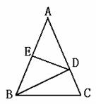 (本题10分)如图所示,点D在AC上,点E在AB上,且AB=AC,BC=BD,AD=DE=EB,求∠A的度数。