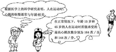 24.(本题6分)在正常情况下,一个人在运动时所能承受的每分钟心跳的最高次数S(次/分)是这个人年龄n(岁)的一次函数.