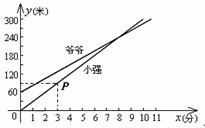 王教授和孙子小强经常一起进行早锻炼,主要活动是爬山.有一天,小强让爷爷先上,然后追赶爷爷.图中两条线段分别表示小强和爷爷离开山脚的距离(米)与爬山所用时间(分)的关系(从小强开始爬山时计时).