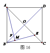 27.(10分)如图l6,已知正方形ABCD的对角线AC、BD相交于点O,E是AC上一点,连结EB,过点A作AM