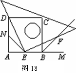 ⑵如图19,当点E在AB边上的任意位置时,请你在AD边上找到一点N,使得NE=BF,进而猜想此时DE与EF有怎样的数量关系.