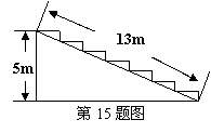 15.东盛大厦是连云港市的一道靓丽的风景。举行竣工典礼时,在高5m,长13m的一段台阶面上铺上地毯,台阶的剖面如图所示,则地毯的长度至少需要 m。