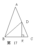 17.在等腰三角形ABC中,AB=AC,DE⊥BC交BC于点E,若∠A=30°,则∠EDC= 度。