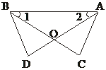 如图,△ABC与△BAD中,AD与BC相交于O点,∠1=∠2,请你添加一个条件(不再添加其它线段,不再标注或使用其他字母),使AC=BD,并给出证明。