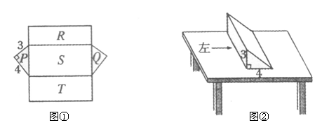 6、把图①的纸片折成一个三棱柱,放在桌面上如图②所示,则从左侧看到的面为( )