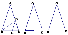 (本题10分)、.如图,已知△ABC中,AB=AC,∠A=36°,请仿照图①再设计两种不同的方法,把△ABC分成三个等腰三角形。(图②、图③供画图用,作图工具不限,要求标出所分得的每个等腰三角形三个内角的度数。)