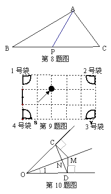 9.如图是一个改造后的台球桌的平面示意图(虚线为正方形网格),图中四个角上的阴影分别表