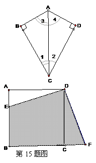 15.如图,△ABC与△ADC中,∠B=∠D=90O,