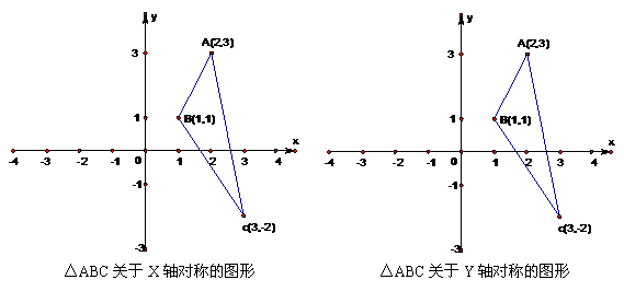 (8分)如图,利用关于坐标轴对称的点的坐标特点,分别作出△ABC关于x轴和y轴对称的图形。