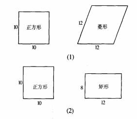 2、(1)观察下面两组图形,图(1)中的两个图形相似吗?为什么?图(2)中的两个图形呢?与同伴交流。