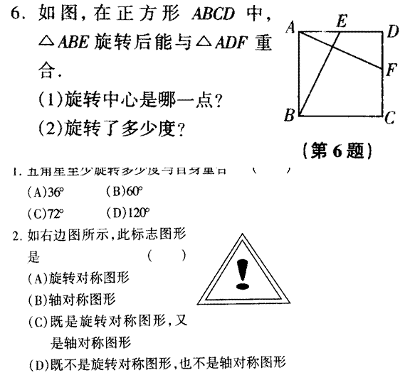 5、如图所示的图形,绕哪一点旋转多少度方能与自身重合?