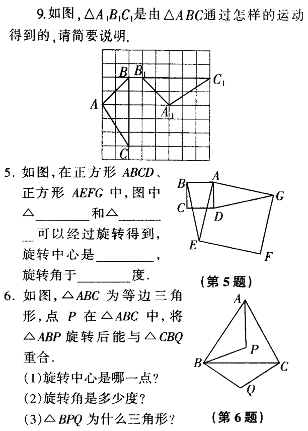 8、在纸上任意画一个△ABC,再任意画一个点P,然后画出△ABC绕点P逆时针方向旋转45°后
