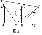 8、(本小题10分)如图1,图2,四边形ABCD是正方形,M是AB延长线上一点.直角三角尺的一条直角边经过点D,且直角顶点E在AB边上滑动(点E不与点A,B重合),另一条直角边与∠CBM的平分线BF相交于点F.