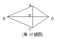 19、如图,BA=BC,DA=DC,AC与BD相交于点F,不再添加任何辅助线,也不另外标注字母,请你写出两个你认为正确的结论:(1)__________ (2)_________ .