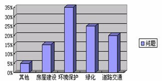 (6分)政府为了更好的加强城市建设,就社会热点问题广泛征求市民意见,方式是发调查表,要求每位被调查人员只写一个你最关心的有关城市建设的问题.经统计整理,发现对环境保护问题提出的最多,共700个,同时制作了相应的条形统计图,请回答下列问题: