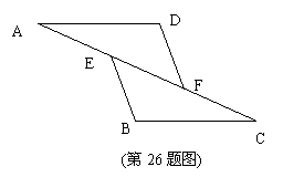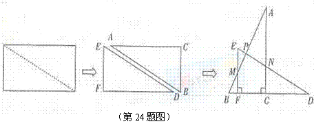 24、(8分)将一张长方形纸片沿对角线剪开,得到两张三角形纸片,将这两张三角形纸片摆放成如下右图的形式,使点B、F、C、D在同一条直线上.