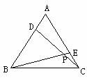 20.如图,已知:在等边三角形ABC中,D、E分别在AB和AC上,且AD=CE ,BE和CD相交于点P。