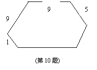 10..如图,一个六边形的6个内角都是120°,其连续四边的长依次是1、9、9、5(cm),那么这个六边行的周长是 。