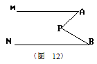 (1)若点P在直线MA与NB之间(如图12),你能得到∠APB=∠MAP+∠NBP这个结论吗?说明你的理由.
