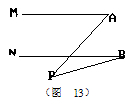 ⑵若P在两条直线MA,NB之外时(如图13),又会有什么结论?(不需要说明理由)
