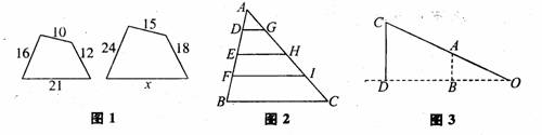 8、如图3,小李在打网球时,使球恰好能打过网,而且落在离网6米的位置(BO长),若小李击球的高度2米(CD),网高0.8米,则击球处离网距离 米。