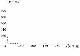 (2)化工商店为了解这种原料的月销售量y(千克)与实际售价x(元/千克)之间的关系,每个月调整一次实际售价,试销一段时间后,部门负责人把试销情况列成下表: