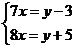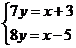 8.某班有x人,分y个学习小组,若每组7人,则余下3人;若每组8人,则不足5人,求全班人数及分组数.正确的方程组为( )