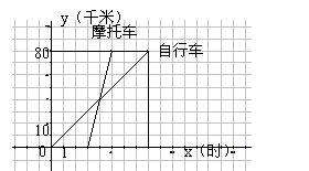 (5分)如图是一骑自行车者和一骑摩托车者沿相同路线由甲地到乙地行驶过程的函数图象(分别为正比例函数和一次函数)。两地间的距离是