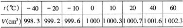为了研究某合金材料的体积V(cm3)随温度t(℃)变化的规律,对一个用这种合金制成的圆球测得相关数据如下: