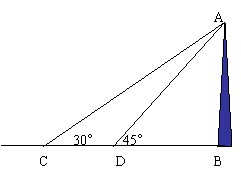 11.如图,河对岸有铁塔AB,在C处测得塔顶A的仰角未30°,向塔前进14m,到达D,在D处测得A的仰角围45°,求铁塔AB的高。