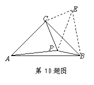 km, ∴最低造价为120000元 9.设AD=x米,则AB为(10+x)米,AC为(15-x)米,BC为5米,∴(x+10)2+52=(15-x)2,解得x=2,∴10+x=12(米) 10.如图,将△APC绕点C旋转,使CA与CB重合,即△APC≌△BEC,∴△PCE为等腰Rt△,∴∠CPE=45°,PE2=PC2+CE2=8. 又∵PB2=1,BE2=9,∴PE2+ PB2= BE2,则∠BPE=90°,∴∠BPC=135°.