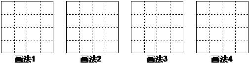 如图,把大小为4×4的正方形方格图形分割成两个全等图形,例如图1.请在图2中,沿着虚线画出四种不同的分法,把4×4的正方形方格图形分割成两个全等图形.