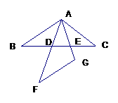 3. 将两块完全相同的等腰直角三角形放成如图的样子,假设图形中的所有点、线都在同一平面内,图中有相似三角形吗?如果有,一一写出,并给予证明。