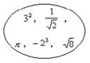 23、在右图的集合圈中,有5个实数。请计算其中的有理数的和与无理数的积的差。