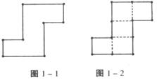 25.工人师傅要将一块如图1-1所示的铝板,经过适当的剪切后,焊接成一块正方形铝块,请在此图中画出剪切线,并将剪切后的铝块拼成一个面积最大的正方形。(山东省淄博市中考题)