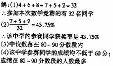 (2)如果成绩在90分以上(含90分)的同学获奖,那么该中学参赛同学的获奖率是多少?(3)这次竟赛成绩的中位数落在哪个分数段内?