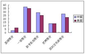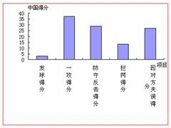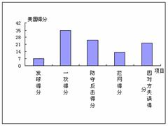 分析表中的数据我们可以大概地了解到,中国队战胜美国队的主要因素是失误较少,防守反击比较成功,而中国队发球的威力不大,这是需要提高的。这一战的胜利使中国队顺利地获取了奥运会的参赛资格,相信中国女排在即将到来的奥运会上会再铸辉煌。