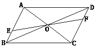在四边形ABCD中,AB//CD,对角线AC、BD交于点O,EF过O交AB于E,交CD于F,且OE=OF,求证,ABCD是平行四边形。![]()